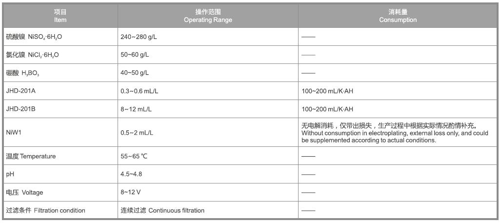 JHD-201B:俗稱輔光劑,也稱柔軟劑。消除除鍍層內(nèi)應(yīng)力,促進鍍層均勻分布。201B不足時,低電流密度區(qū)發(fā)暗,鍍層脆性大;201B過量時,可能導(dǎo)致出光速度慢;