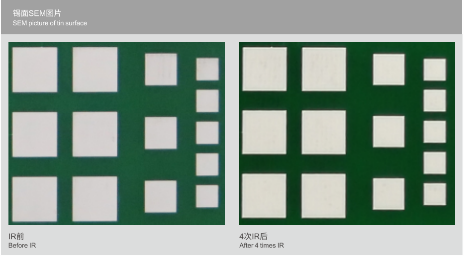 化學(xué)沉錫是通過(guò)改變銅離子的化學(xué)電位,使鍍液中的Sn2+與PCB板的銅面發(fā)生置換反應(yīng),在銅面上生成厚度在1μm左右的銀白色錫層,是取代噴錫的最理想工藝。產(chǎn)品適用于細(xì)線、密線的PCB板以及Press-fit插裝技術(shù),適用無(wú)鉛貼裝工藝,可滿足多次焊接的要求;適用于水平和垂直沉錫。