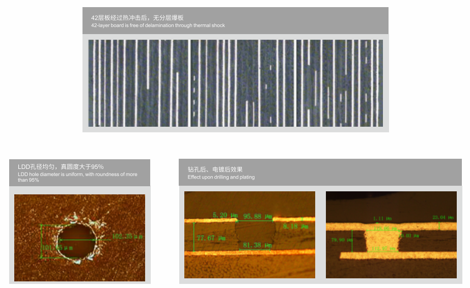 • 適用于高多層板和HDI板制作,5次壓合后的多層板經過5次熱沖擊,無分層;