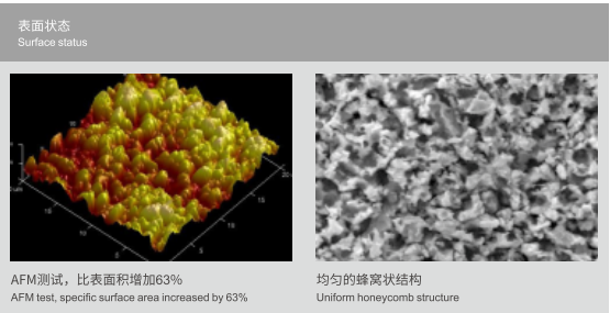 • 形成均勻的蜂窩狀結構,比表面積可增大60%以上;